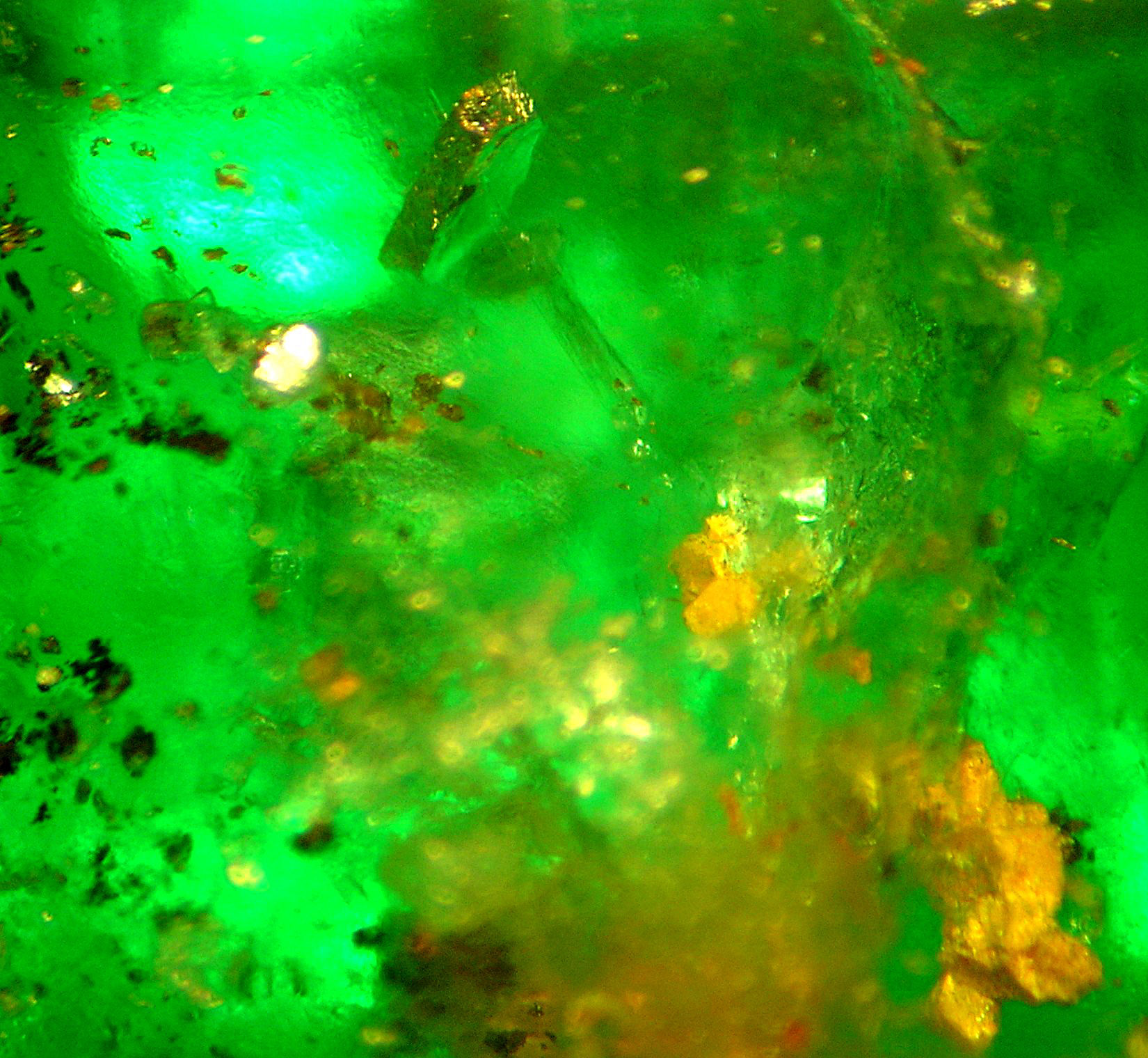 Below The same ring, magnified to show a 3 phase inclusion. The arrow points